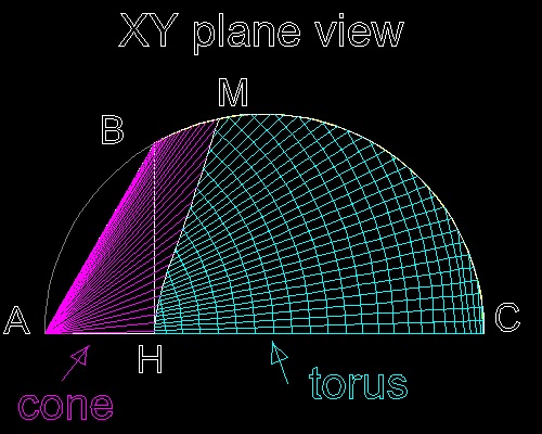 Arc BMC is the surface of cylinder intersecting cone (BM) and torus (MC).