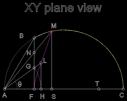 xy plane. The solution is the point where such a curve crosses the circle ABC.
