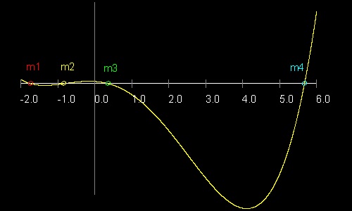 3θ = π/3 のとき この式は m3 - 3√3 m2 - 3m + √3 = 0 となる。 これは アルキメデスの挿入方(#1) の場合と全く同じものである。この4次方程式 F(m)=0 の根を見つけるために 先ず m = -2 から 6についてグラフにする。