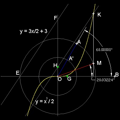 This suggests that the roots of the trisection equation are the x-values of the intersection of cubic parabola