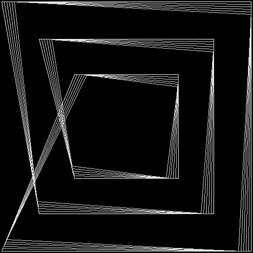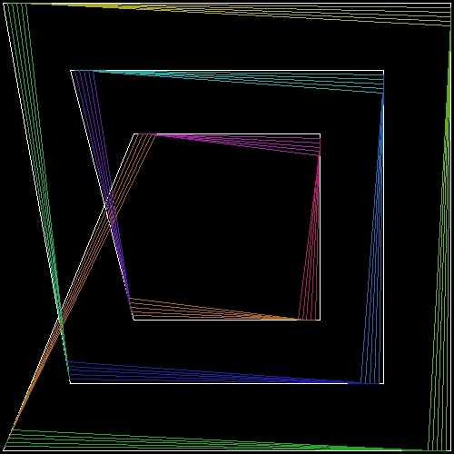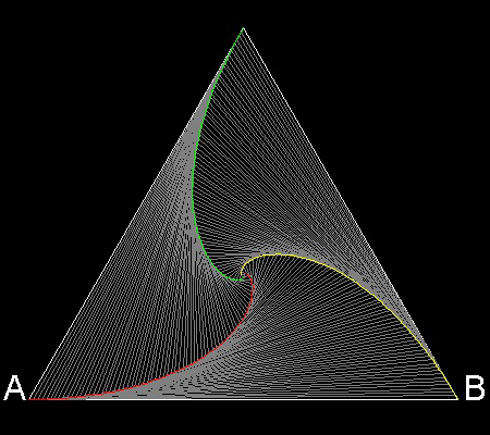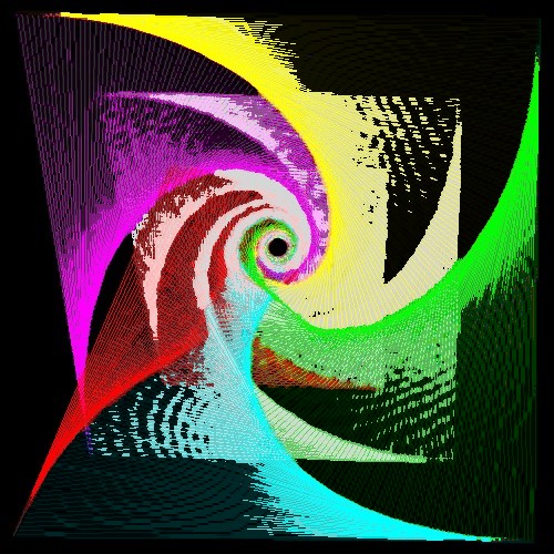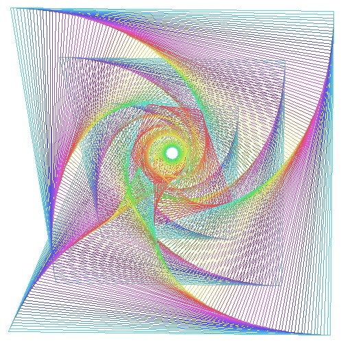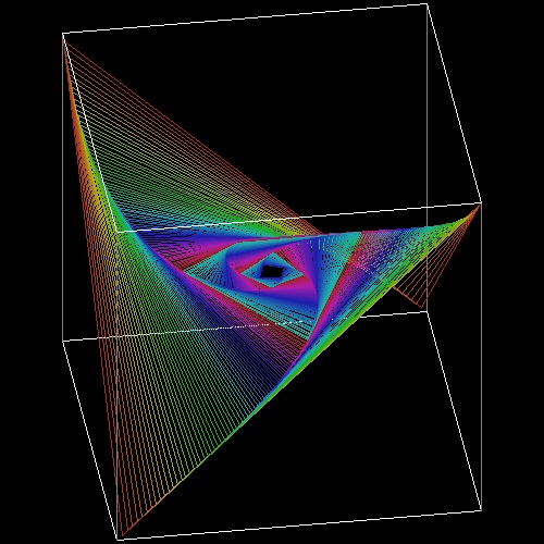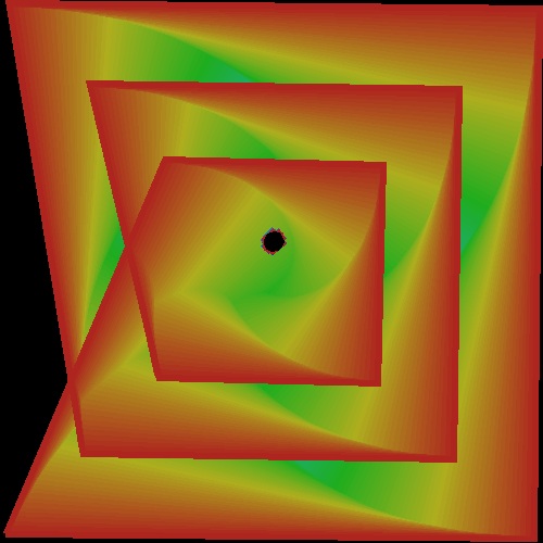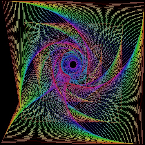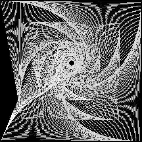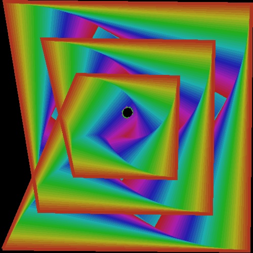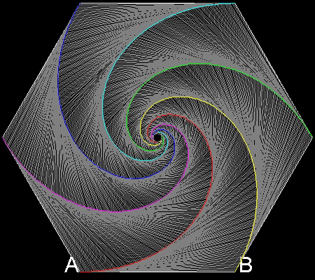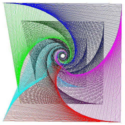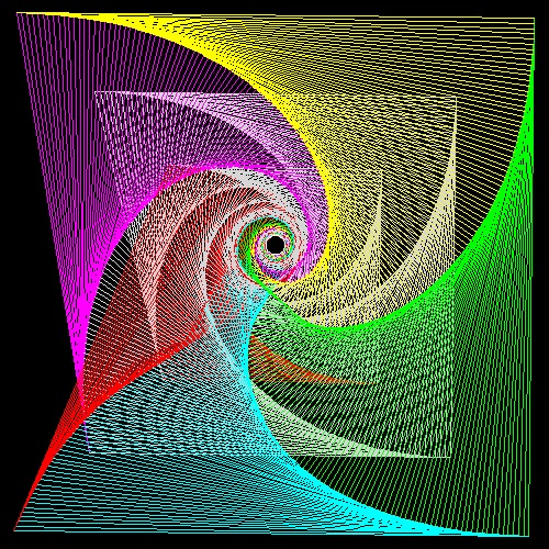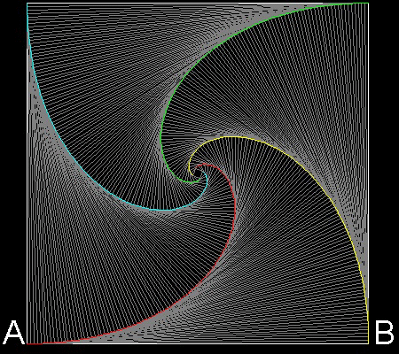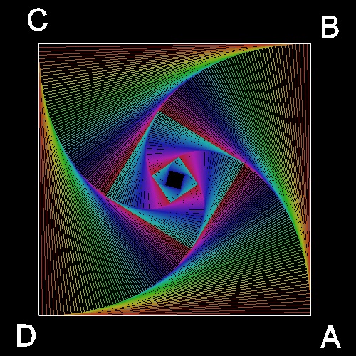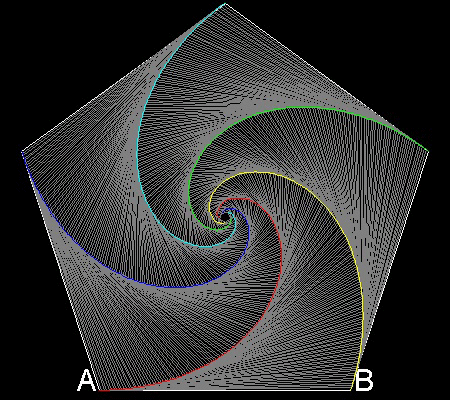 多角形のコーナーにいる犬が互いの尻尾を追いかける--等角螺旋このページにあるアニメーションのリスト(ハイパーテキストをクリックするとアニメーションがみられます。)