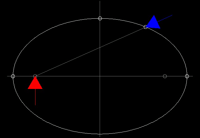 相対速度を (a/c) に設定し、a は長半径、c は原点から焦点までの距離とする。