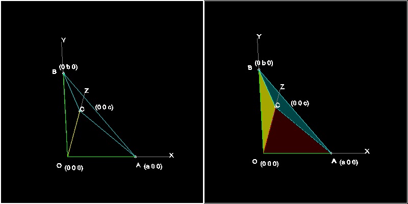 (Area of ABC)2= (area of OAB)2 + (area of OBC)2 + (area of OCA)2