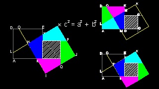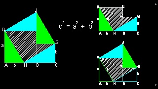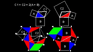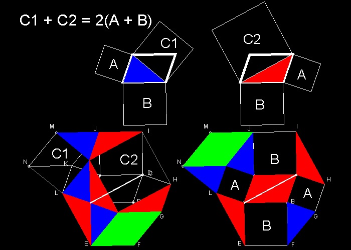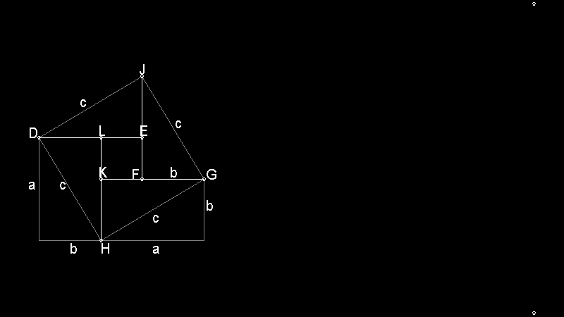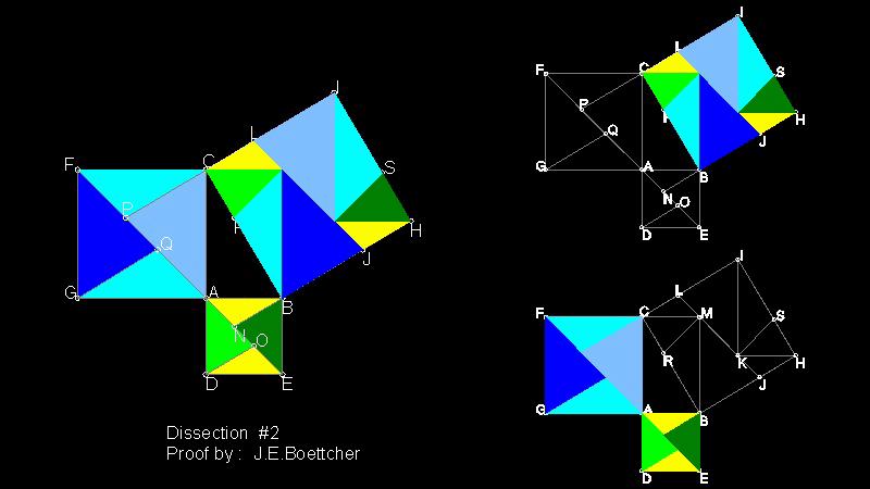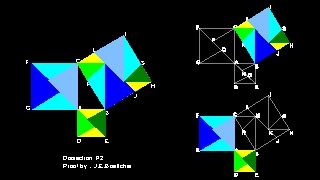 The cross-hatched area in Perigal's dissection can be further divided into one square and 2 triangles. This leads us to the next variation.