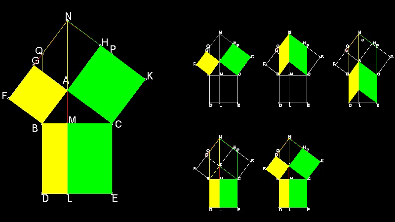 In Book I of Euclid's Element, this theorem is stated as Proposition 47.