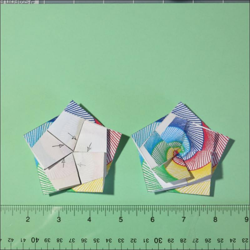 Step 4 Make the left pentagon. Two pentagons unit is complete. (Fig. 19 )