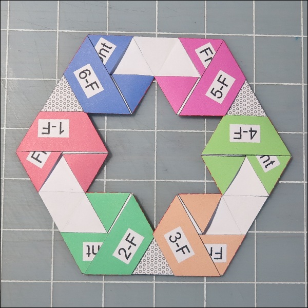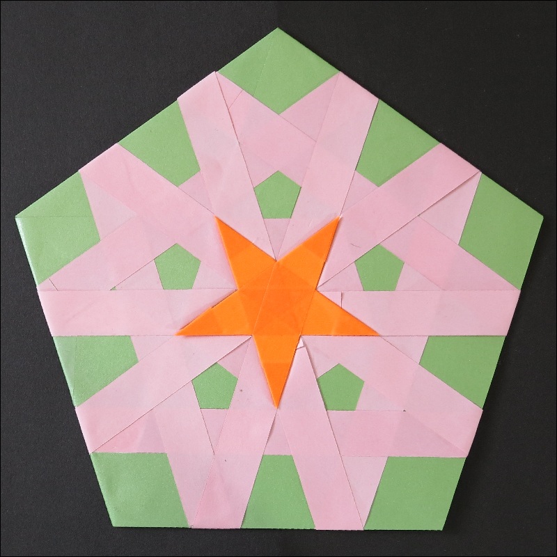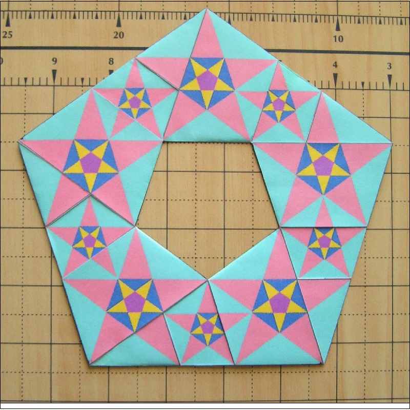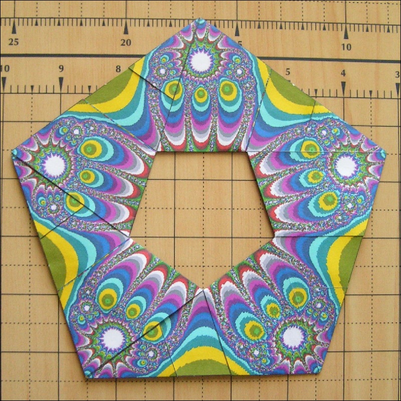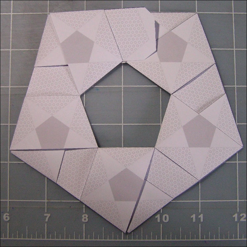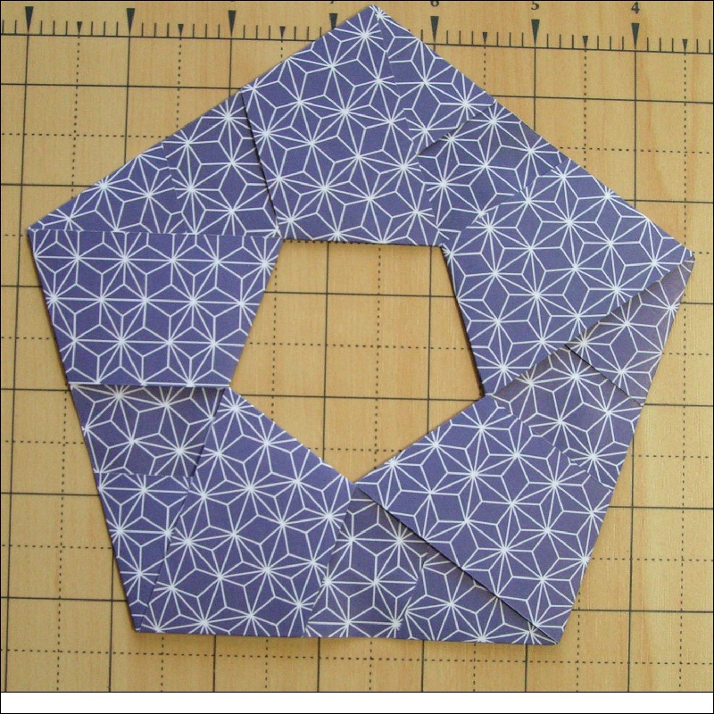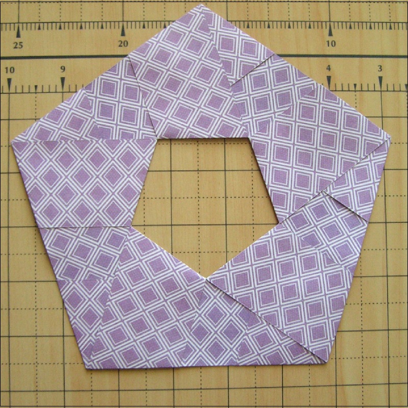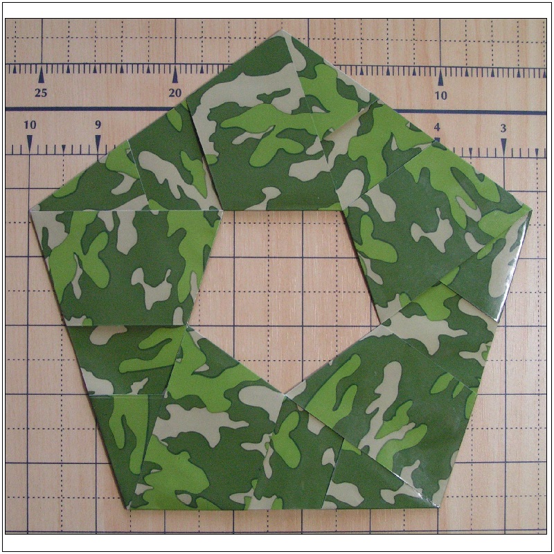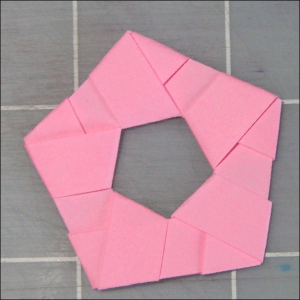 Then construct a pentagon ring as shown in Fig. 24. All the fold is "Yama-Ori".