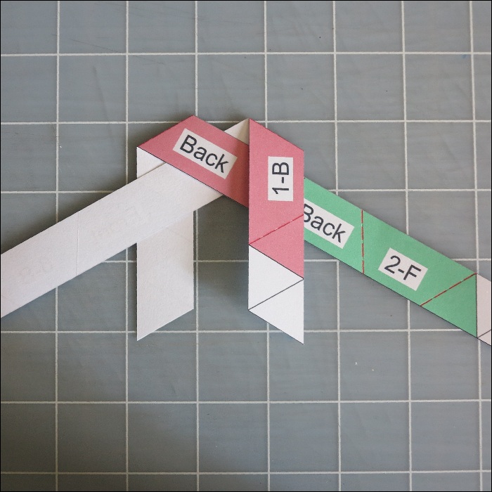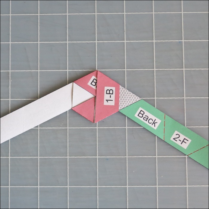 Step 4 Take strip #1 and #2 ,lay the left back side of #2 strip on the right edge of
