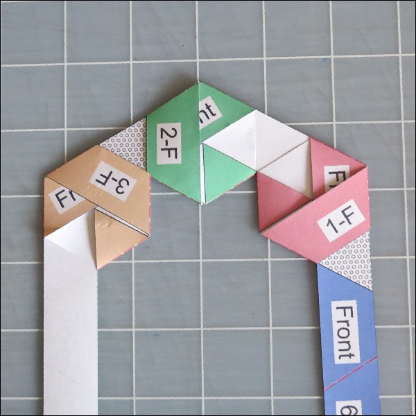 The third folding must go through under two layers of strip. The result is shown
