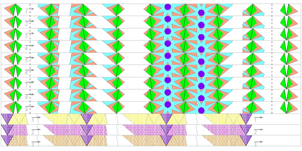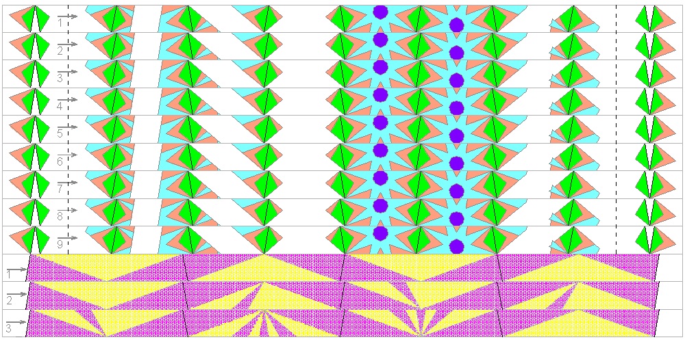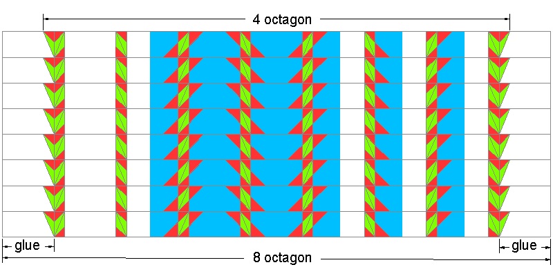 First, prepare 4 strips cut from octagon_2 drawing shown above.